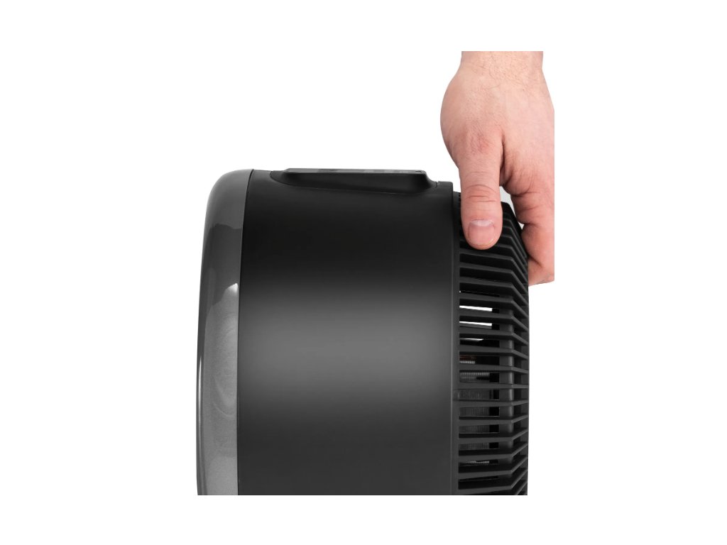 Der Heizlüfter TFH 2000 E besticht durch seine klare Ästhetik und ein Design, das der Form einer Hochleistungsturbine nachempfunden ist. Ob auf dem Boden oder dem Schreibtisch – der kompakte TFH 2000 E ist überall ein stilvoller Hingucker. Und mit dem auf der Rückseite eingelassenen Transportgriff lässt sich das nur 2000 g leichte Gerät immer genau dort aufstellen, wo es Ihnen am besten gefällt.