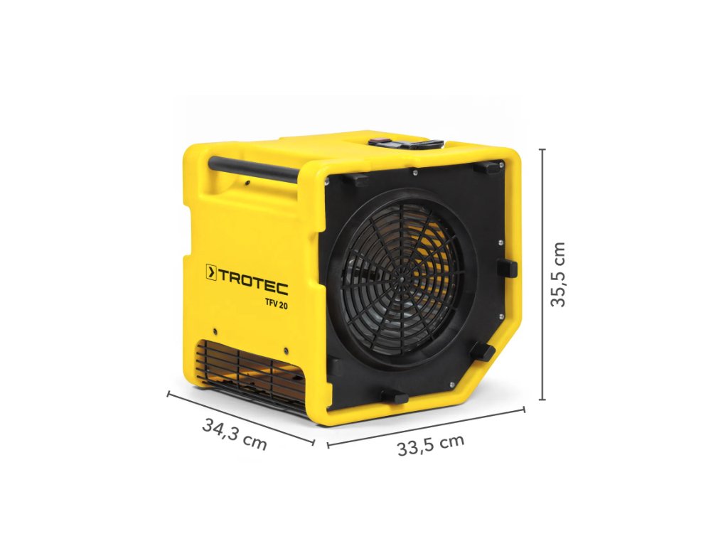 Der TFV 20 ist eine auffallend gute Lösung für großvolumige Luftumwälzungen bei vielen professionellen Aufgabenstellungen, denn dieser exklusiv nur bei Trotec erhältliche Radialventilator zeichnet sich nicht nur durch sein praxisoptimiertes deutsches Industriedesign aus, sondern vor allem auch durch Leistung und Langlebigkeit.