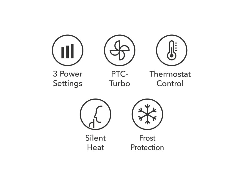 - Geräuschlose Beheizung (wenn der Ventilator nicht in Betrieb ist)