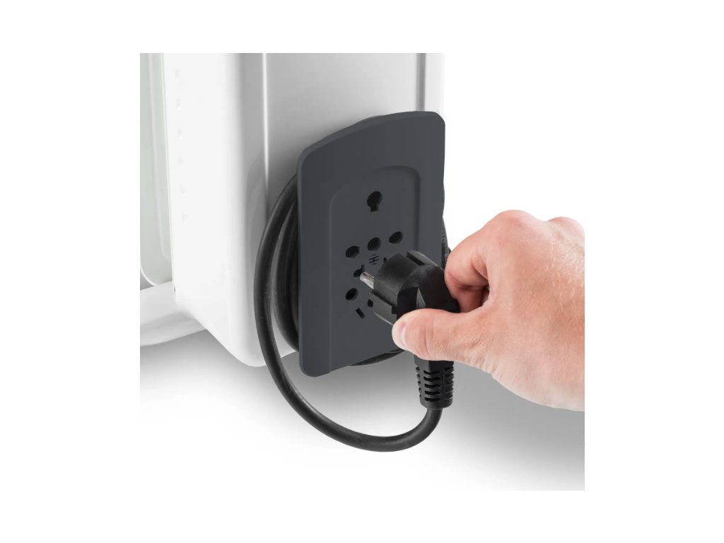 Aufgrund der praktischen Kabelaufwicklung mit Stecker-Aufnahme ist das Gerät sicher transportierbar, ohne dass sich das jeweils 1,4 Meter lange Netzkabel selbstständig macht und zur gefährlichen Stolperfalle wird.