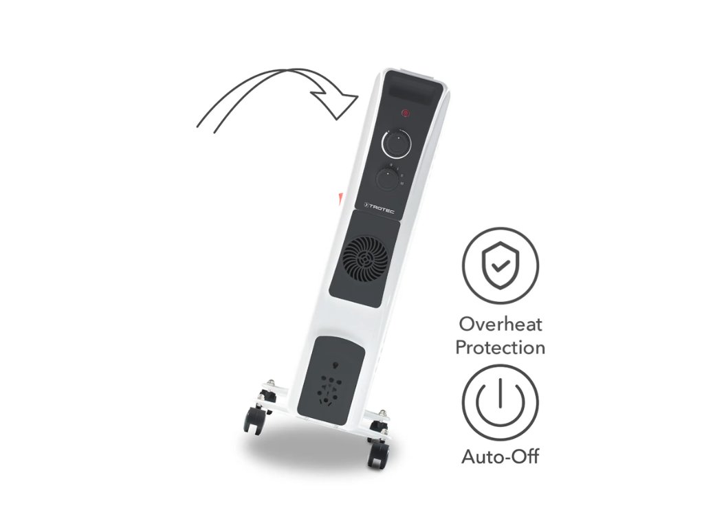 Ob tobende Kinder, übermütige Haustiere oder unachtsame Gäste – das Heizgerät verfügen dank ihrer breit ausgelegten Laufrollen über einen sicheren Stand. Sollten die Ölradiatoren im Eifer des Gefechtes doch einmal ins Wanken geraten, dann schaltet der eingebaute Kipp-Abschalter das Gerät vollautomatisch aus.