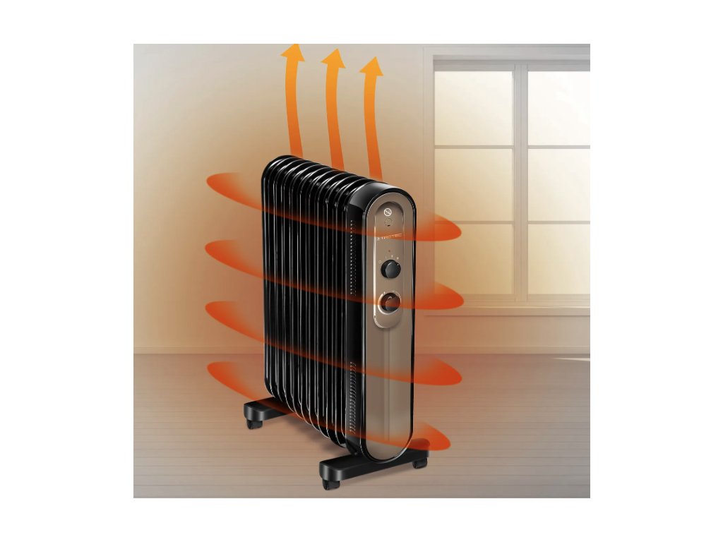 Mit ihren Heizrippen sehen Ölradiatoren zwar einer ‚normalen‘ Heizung durchaus ähnlich, doch nutzen sie im Gegensatz zu dieser die Elektrizität, um das Öl in ihrem Inneren zu erwärmen. Das sogenannte Thermoöl wird durch den Strom erhitzt und gibt die Wärme über die Heizrippen an die Raumluft ab. Übrigens sind Ölradiatoren deshalb meistens mit Heizrippen ausgestattet, weil diese eine größere Oberfläche bilden, wodurch das Heizen sehr effektiv wird. Da die Geräte mobil sind, können sie in jedem Raum genau an der Stelle platziert werden, wo Wärme benötigt wird.