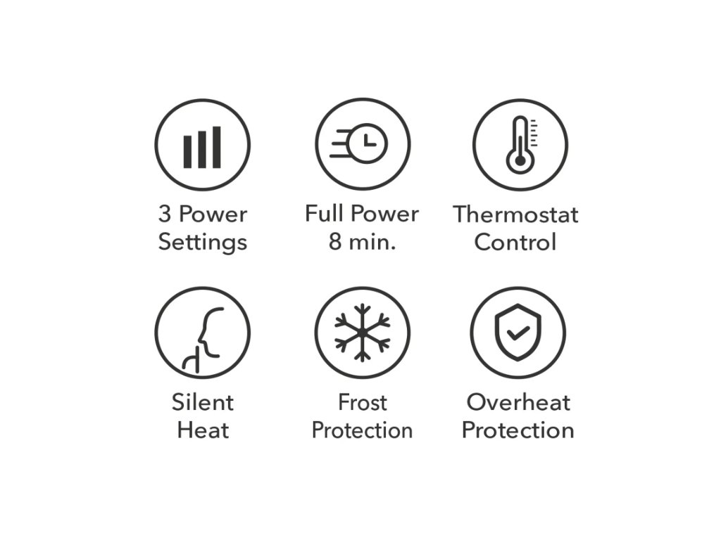 - Kurze Aufheizzeit: volle Wärmeleistung in max. 8 Minuten