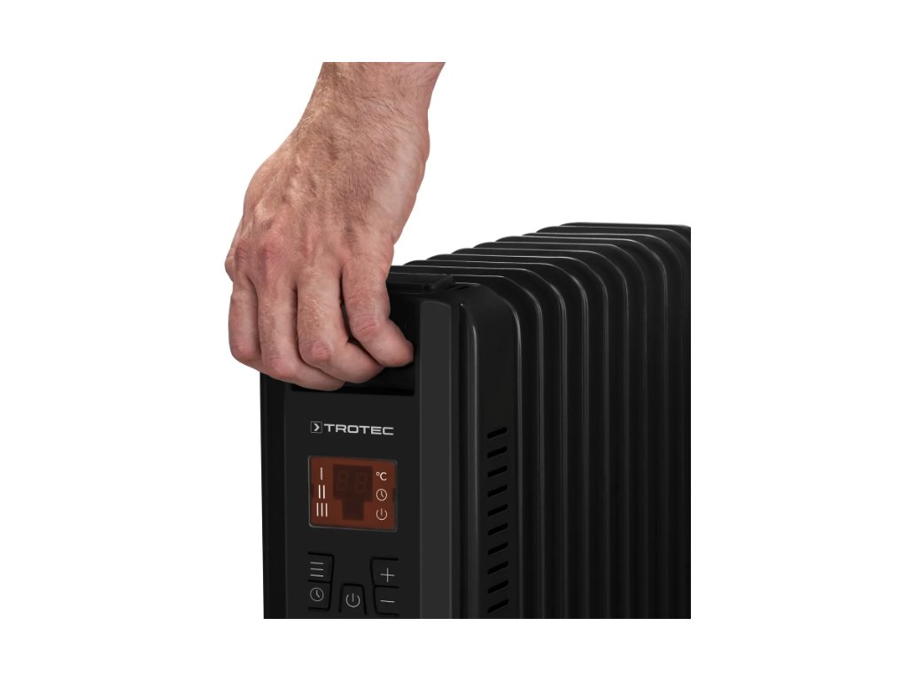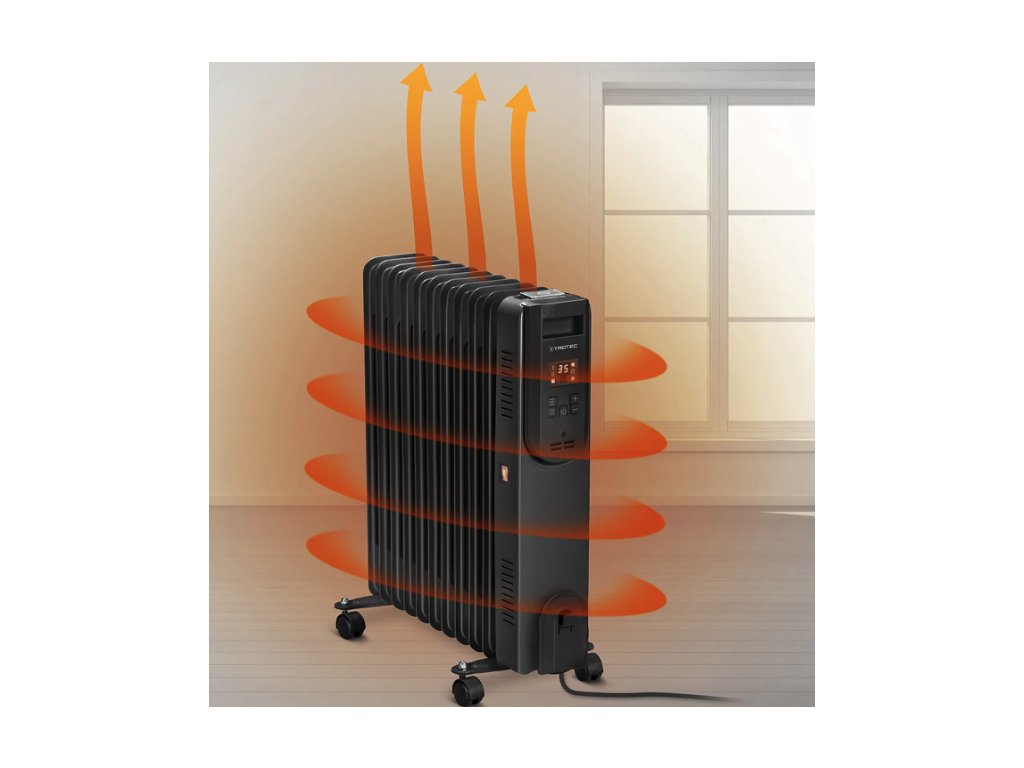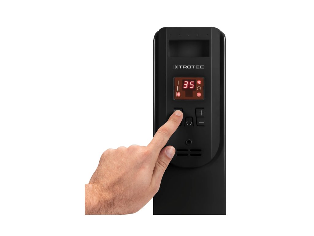 Die Raumtemperatur sollte stets mit Bedacht erhöht werden. Denn: Ein Überheizen des Raumes hat nicht nur negative Auswirkungen auf das Raumklima – jedes Grad mehr an Raumtemperatur kostet im Schnitt auch ca. 6 Prozent mehr an Energiekosten. Intelligent und stromsparend sorgt der TRH 25 E für wohlig warme Raumtemperaturen im Bereich von 15 °C bis 35 °C. Stellen Sie die gewünschte Zieltemperatur einfach und bequem über den digitalen Thermostat mit Echtwerteingabe am Gerät oder über die mitgelieferte Fernbedienung ein, danach regelt der Ölradiator vollautomatisch die Heizleistung und den Energieverbrauch. Wird die Wunschtemperatur erreicht, schaltet sich das Heizgerät selbstständig ab. Fällt die Temperatur unter den voreingestellten Wert, schaltet sich der Radiator ohne Ihr Zutun erneut zum Nachheizen an. Das ist nicht nur bequem, die sensorgesteuerte Temperaturregelung spart zudem eine ganze Menge Energiekosten!