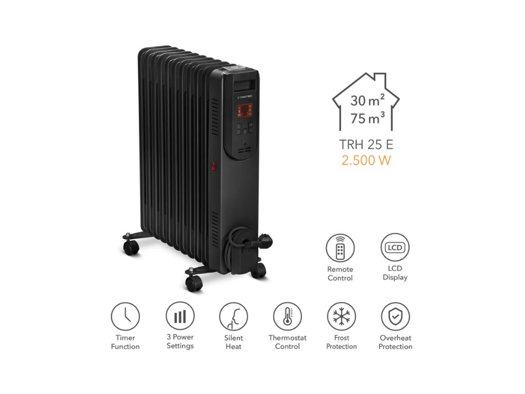 Der Ölradiator TRH 25 E überzeugt durch attraktive Optik, langanhaltende Heizleistung und angenehmen Komfort – einfach ideal zur Beheizung kleiner bis mittlerer Räume.