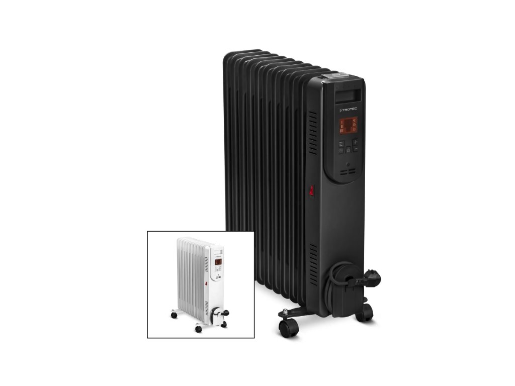 Die Ölradiatoren TRH 25 E und TRH 26 E sind technisch baugleich, unterscheiden sich jedoch in der Farbe. Ganz in attraktivem Schwarz gehalten liegt der TRH 25 E voll im Trend und setzt im Wohn- oder Büroumfeld einen stilvollen optischen Akzent. Der TRH 26 E präsentiert sich dagegen in klassisch elegantem Weiß – ideal z. B. im Badezimmer oder für helle Wohnungseinrichtungen. Ganz gleich in welcher Farbe: mit 11 Heizrippen, 3 Heizstufen und einer Heizleistung von 2.500 Watt entfalten beide mobilen Ölradiatoren bereits nach 8 Minuten ihre maximale Wärmeleistung in bis zu 30 m² bzw. 75 m³ großen Räumen. Für besonderen Komfort sorgen dabei die praktische Fernbedienung sowie die 12h-Timer-Funktion. Das moderne LED-Display setzt bei beiden Modellen einen optischen Akzent und zeigt Ihnen klar und deutlich die voreingestellte Wunsch-Raumtemperatur an.
