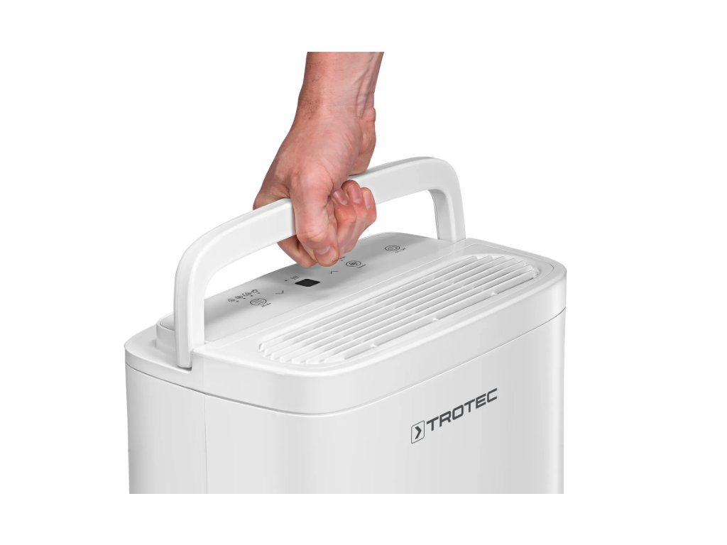 Leistungsstarke Kompressortechnik,Hygrostatsteuerung, Drainage-Anschluss für unbeaufsichtigte Dauereinsätze, 2-Stufen-Gebläse,, Tank-voll-Auto-Stopp-Funktion, leicht zu reinigender Luftfilter und einfacher Raumwechsel dank Tragegriff und 360-Grad-Rollen – der TTK 27 E lässt keine Wünsche offen.