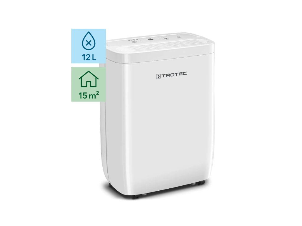 Dank seiner hochwertigen Kältekompressionsanlage mit umweltfreundlichem Kältemittel und Abtauautomatik kondensiert der TTK 27 E täglich bis 12 Liter Feuchte aus der Raumluft und hält aufgrund 122 m³/h max. Luftumwälzung problemlos auch unbeheizte Räume bis 15 m² (37 m³) Größe dauerhaft trocken.