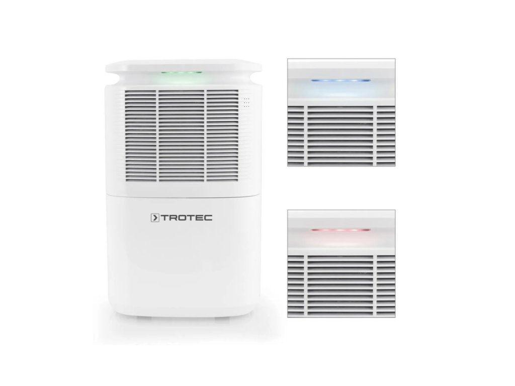 Hinter seinem bewusst dezent gestalteten Äußeren verbirgt sich beim TTK 30 E innovative Technik vom Feinsten. Denn der Komfort-Luftentfeuchter verfügt über eine zusätzliche Funktion der Extra-Klasse: seine farbige LED-Beleuchtung signalisiert den Status der aktuellen Raumluftfeuchte! Dieser innovative Clou findet sich gleich oberhalb des Lufteinlass-Gitters an der Vorderseite des Gerätes. Dabei informieren insgesamt drei LED-Farben, ob die Raumluftfeuchte optimal, sehr hoch oder sehr niedrig ist.