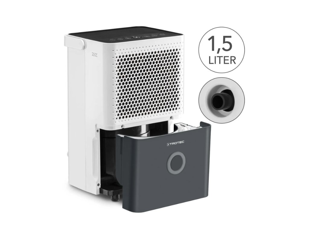 Mit einer Entfeuchtungsleistung von bis zu 14 l / 24 h und einem 1,5 Liter großen Wassertank mit Überlaufschutz empfiehlt sich der wohnraumfreundliche TTK 33 E zur Trockenhaltung mittlerer Raumgrößen bis 15 m² bzw. 37 m³. Um beispielsweise feuchte Keller, Garagen oder Lagerräume unbeaufsichtigt zu entfeuchten – ohne sich dabei Gedanken über den Füllstand des Wasserbehälters machen zu müssen – verfügt der tragbare Entfeuchter über einen rückseitigen Schlauchanschluss. Über diesen Permanentanschluss kann das der Luft entzogene Kondensat komfortabel über den im Lieferumfang enthaltenen Kondensatablaufschlauch in einen Abfluss abgeleitet werden.