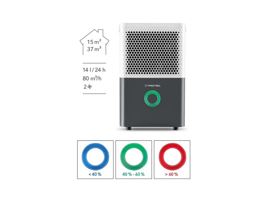 Der Komfort-Luftentfeuchter TTK 33 E verbessert die Luftqualität und hält die Raumluftfeuchte konstant im optimalen Bereich. Dank der 3-farbigen LED-Anzeige behalten Sie den Feuchtigkeitsgehalt der Raumluft immer im Blick. Mit seinen dunkelgrauen Farbakzenten fügt er sich zudem in jedes Raumambiente stilvoll ein.