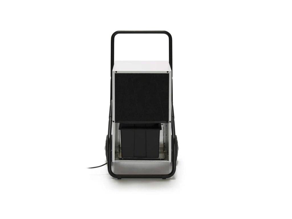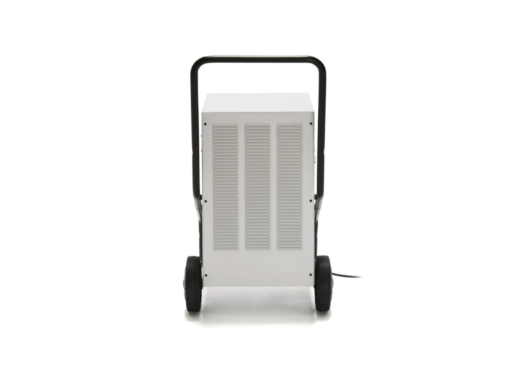 Dass dieser zuverlässige Luftentfeuchter robust und langlebig konzipiert ist, demonstriert nicht nur sein kunststoffbeschichtetes Metallgehäuse, sondern auch die stabile Fahrwagenkonstruktion mit Griff-Bügelstange und großen Transporträdern für maximale Mobilität.