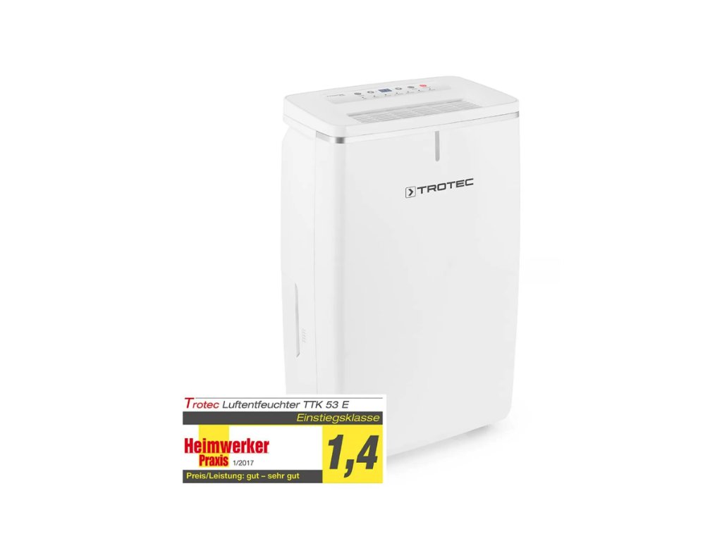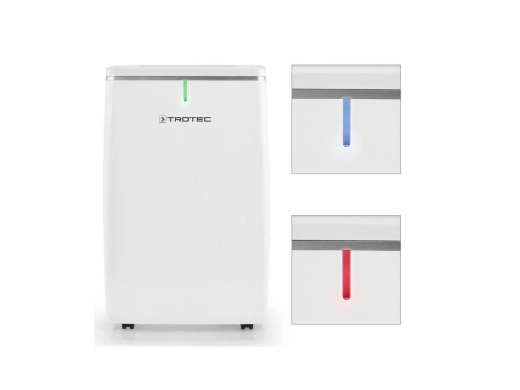 Der TTK 53 E verfügt über alle Ausstattungsfunktionen, die einen modernen Komfort-Luftentfeuchter auszeichnen. Doch darüber hinaus überzeugt der Luftentfeuchter mit einer weiteren interessanten Extra-Funktion: mit Hilfe seiner farbigen LED-Beleuchtung auf der Frontseite signalisiert das Gerät auf den ersten Blick, ob bei der Raumluft-Feuchte alles im grünen Bereich ist.