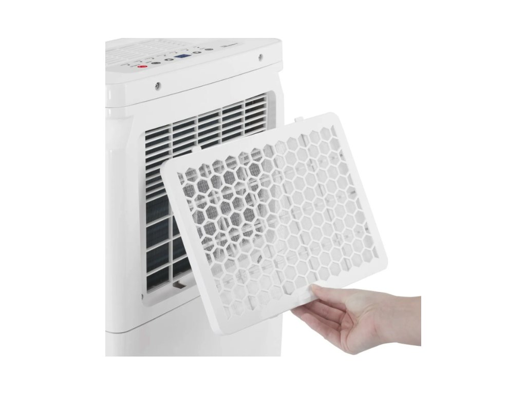 Die Ausstattungsvielfalt des TTK 53 E wird komplettiert durch die praktische Wäschetrocknungs- und die Timer-Funktion, eine Füllstandwarnleuchte bei vollem Wasserbehälter sowie den Überfüllungsschutz mit Autoabschaltung. Die integrierte Memory-Funktion stellt sicher, dass der eingestellte Luftfeuchtigkeitswert und der Betriebsmodus auch nach dem Ausschalten gespeichert bleiben. Der integrierte, auswaschbare Luftfilter ermöglicht eine zusätzliche Luftreinigung durch das Aussondern von Staub oder Tierhaaren und der Drainage-Anschluss erlaubt den unbeaufsichtigten Dauerbetrieb.