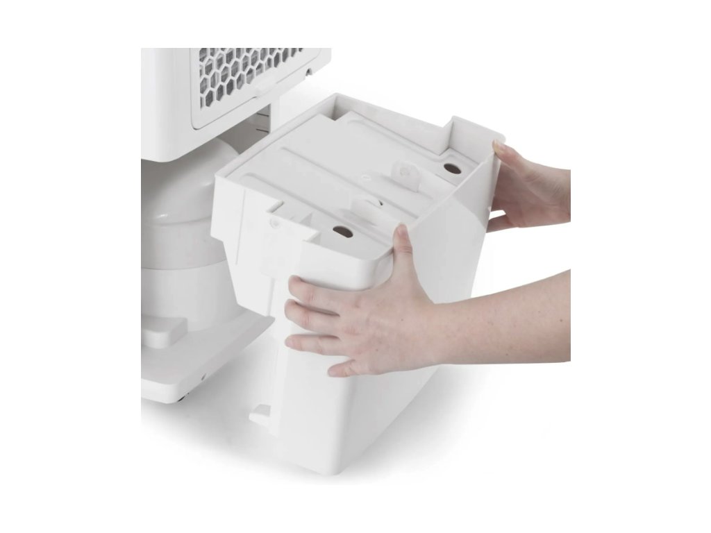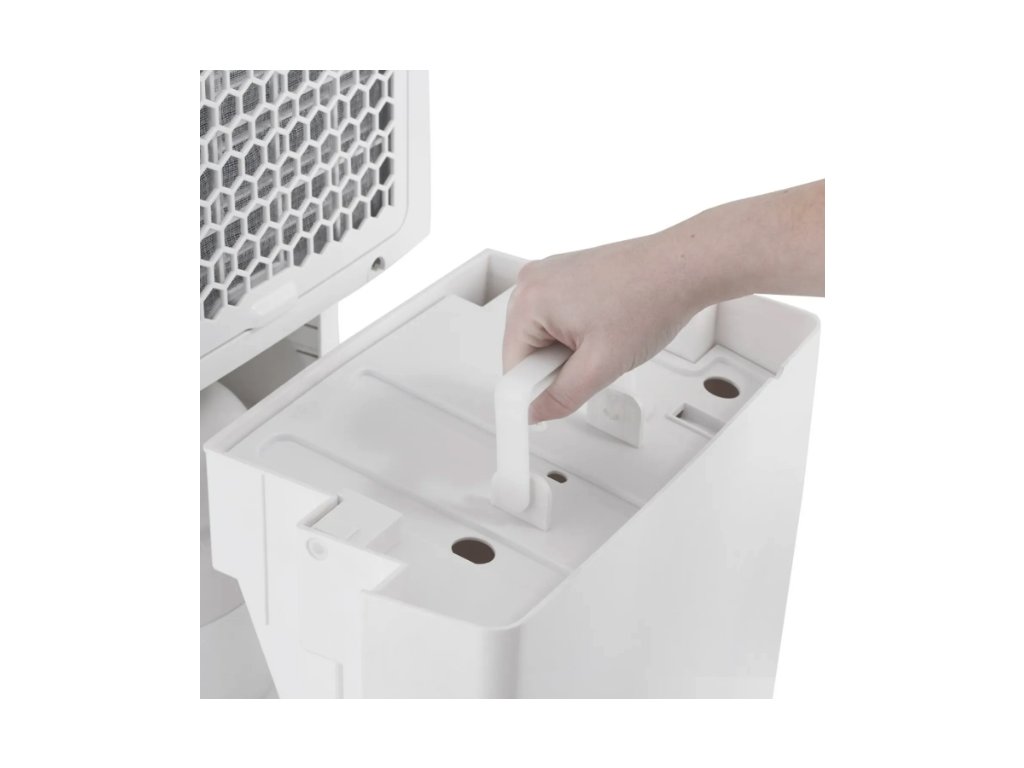 - Auf seiner Frontseite leuchtet eine blaue LED, wenn die Raumluft-Feuchtigkeit unter 55 % sinkt.