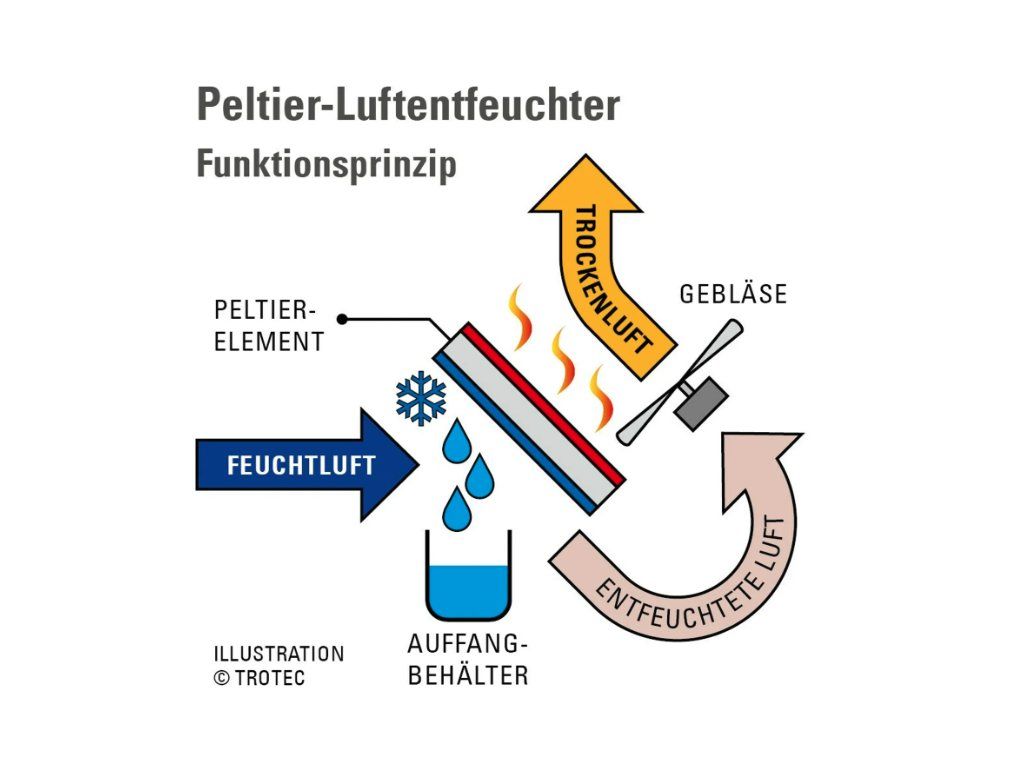 Der Betrieb des TTP 10 E ist energieeffizient optimiert und erfolgt zudem dank des Peltier-Elementes auch flüsterleise – so stört das Gerät keinesfalls die Nachtruhe. Darüber hinaus punktet das Peltier-Gerät im Entfeuchtungsbetrieb mit seiner einfachen Handhabung: Stecker ins Stromnetz einstecken, anschalten und fertig. Ein Tragegriff erleichtert den Transport beziehungsweise den Wechsel des Einsatzortes.