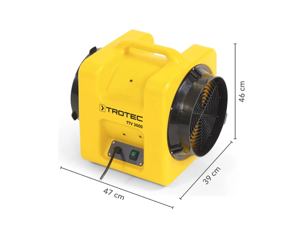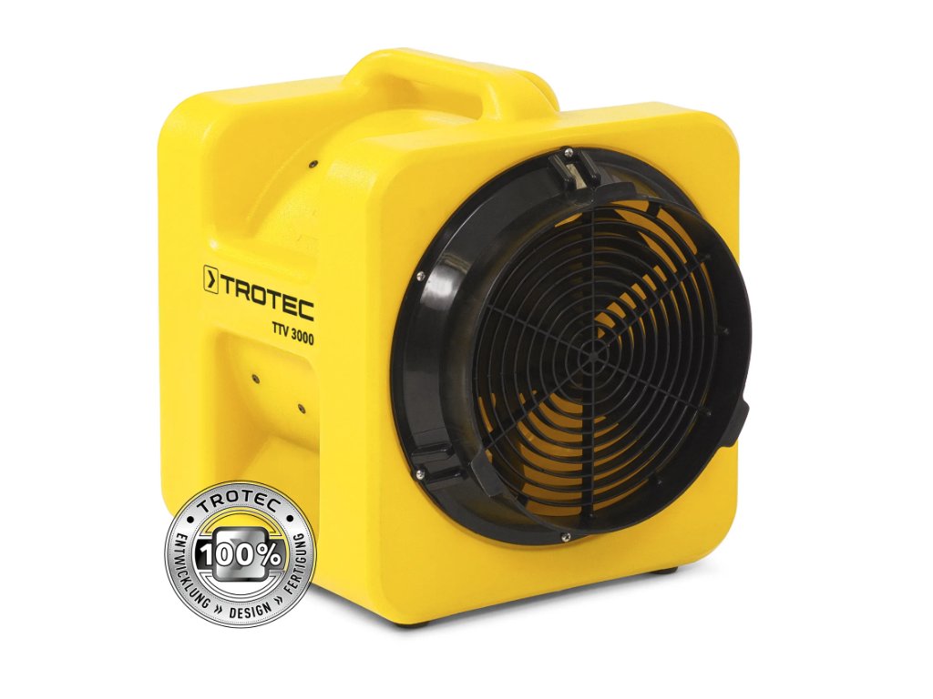 Der TTV 3000 sorgt auf jeder Baustelle ordentlich für Wirbel. Sein markantes deutsches Industriedesign mit integralem Tragegriff, stoßgeschütztem Schalter und stapelbarem Polyethylengehäuse unterstreicht schon auf den ersten Blick die professionelle Ausrichtung dieses Förderventilators – und auch alle anderen Leistungsmerkmale des TTV 3000 können sich sehen lassen.
