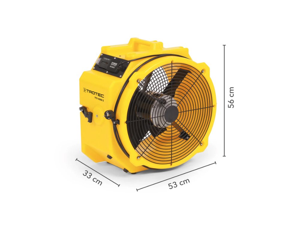 Ob Beschleunigung der Bautrocknung, Staubabsaugung oder Be- und Entlüftung von Baustellen, Lagern und Werkstätten oder in der Landwirtschaft – der TTV 4500 S ist die clevere Ventilatorlösung für alle Anwender, die auf der Suche nach einem budgetoptimierten Hochleistungsventilator sind.