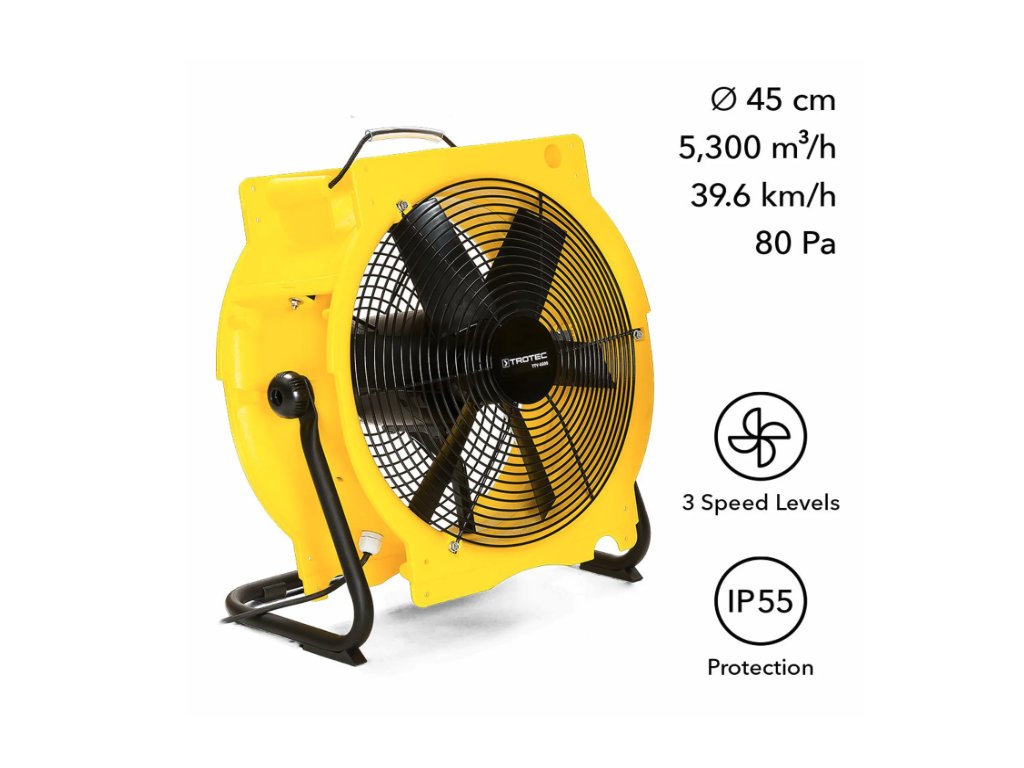 Wie alle Hochleistungsventilatoren der TTV-Serie wurde auch der TTV 4500 speziell auf härteste Praxisanforderungen in rauen Umgebungen mit hoher Standzeit und Zuverlässigkeit auch beim materialzehrenden Dauerbetrieb an häufig wechselnden Einsatzorten konzipiert.