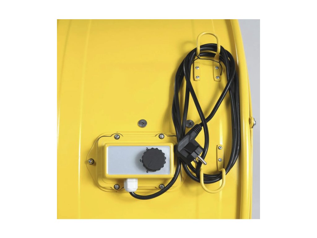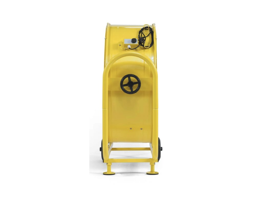 Aufgrund der zweistufig regelbaren Luftleistung von bis zu 27.600 m³/h können mit diesem robusten Trommelventilator die erforderlichen Luftwechselraten auch in großen Räumen oder Hallen erreicht werden.