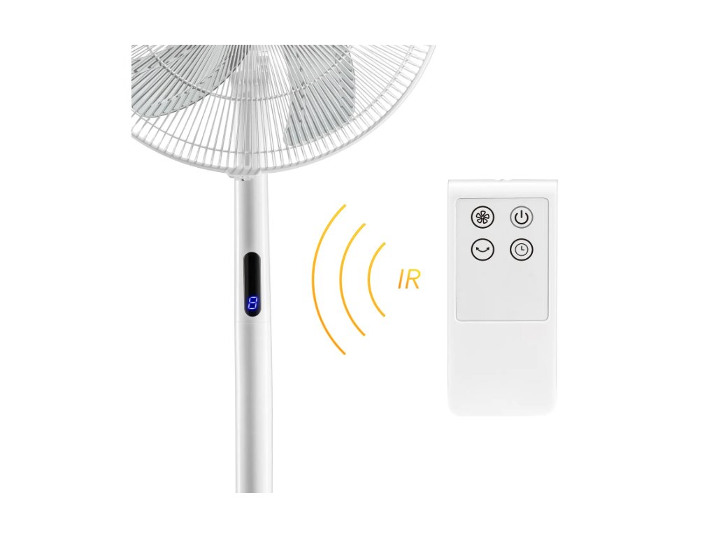 Die Funktionen Ein/Aus, 8 Geschwindigkeitsstufen und 80°-Oszillation können sowohl über das Bedienfeld am Ventilatorkopf als auch bequem per Fernbedienung gesteuert werden. Die Timer-Funktion ist allein mit der Fernbedienung einstellbar. So können Sie direkt vom Bürostuhl, vom Sofa oder vom Bett aus den Ventilator nach Ihren Wünschen regulieren.