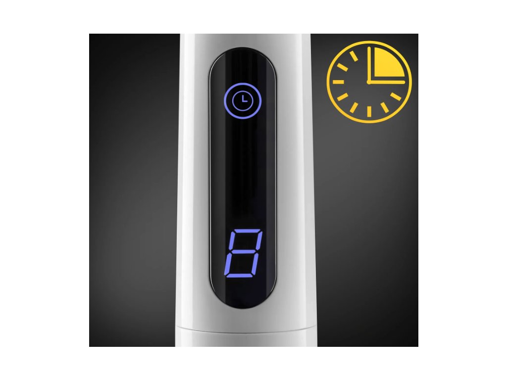 Das in der Mittelstange integrierte LED-Display zeigt Ihnen an, welche Ventilationsstufe aktuell eingestellt ist. Wenn der Timer aktiviert ist, können Sie zudem ablesen, in wie vielen Stunden sich das Gerät ein- bzw. abschaltet. Um Energie zu sparen, ist die Anzeige nur aktiviert, wenn eine Taste auf dem manuellen Bedienfeld oder der Fernbedienung betätigt wird.