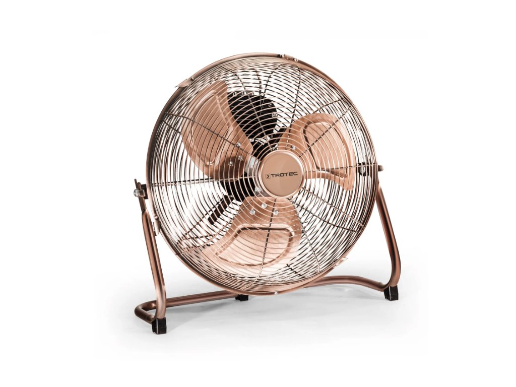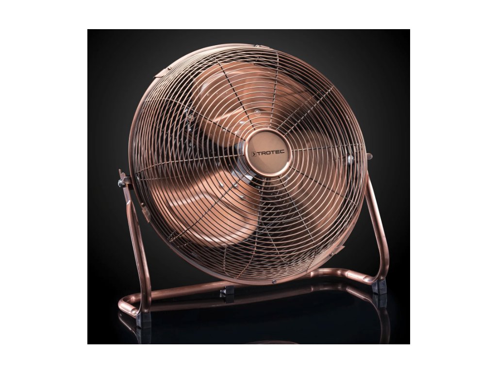 In hitzigen Zeiten sorgt bereits der Anblick dieses coolen Bodenventilators im Retro-Look für Abkühlung. Der TVM 13 ist komplett aus Metall gefertigt und großenteils verkupfert – selbst der Motor ist mit einer Kupfer-Spule ausgerüstet. Das sieht nicht nur glänzend aus, sondern ist aufgrund seiner robusten Fertigung auch auf eine besonders lange Lebensdauer ausgelegt.