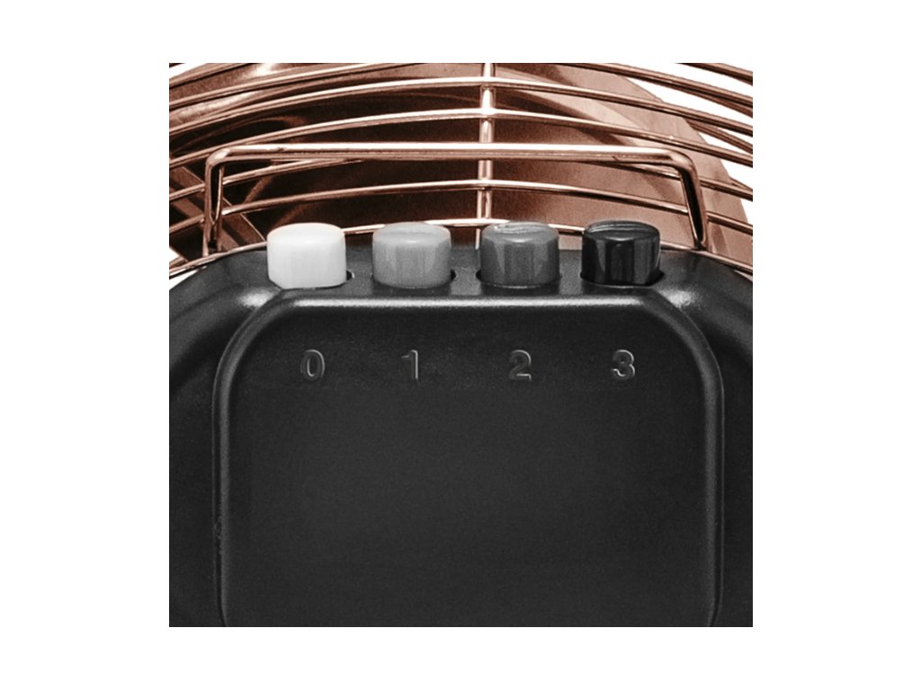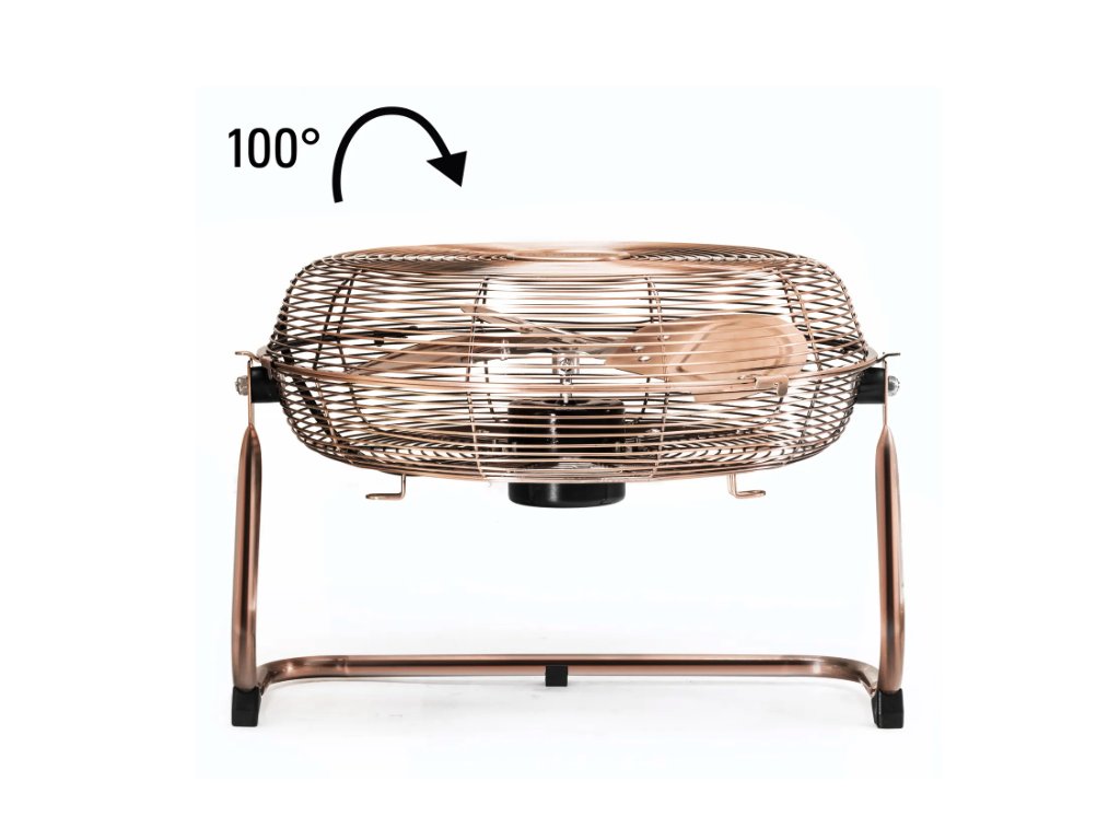 Im Einsatz vertreibt die elegante Windmaschine sowohl zu Hause wie auch im Büro mit einem hohen Luftdurchsatz bei gleichzeitig relativ leisen Betriebsgeräuschen die lästige Sommerhitze. Bei Fotoshootings, Filmsets oder Dreharbeiten sorgt der TVM 13 mit seiner Kupfer-Optik für die richtige Brise. Und dank der optional einsetzbaren Wand- und Deckenhalterung ist auch der Einsatz im Restaurant denkbar. Der Ventilator besitzt drei Geschwindigkeitsstufen, die sich am Bedienelement auf der Rückseite des kupfernen Metallrotorkorbs einstellen lassen. Bei der Belüftung, Winderzeugung, Windkühlung oder Trocknung, von sanfter Brise bis hin zum starken Wind ist somit jede Nutzungs-Variante umsetzbar.