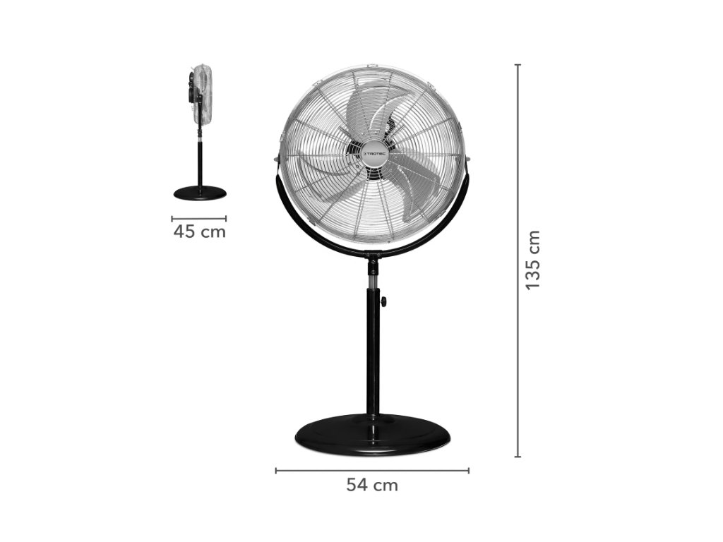 Der Standventilator TVM 18 S behält auch an heißen Tagen stets den coolen Überblick und verschafft schnell die nötige Abkühlung. Dank seiner überzeugenden Leistung von 100 Watt, seinem Flügeldurchmesser von 18 Zoll (rund 45 cm) sowie seiner überragenden Position aufgrund des ausziehbaren und höhenverstellbaren Teleskop-Rohrs bläst der Ventilator auch größere Räume sehr schnell hitzefrei. Dabei verfügt das Gerät über souveräne Leistungsreserven, um auch bei Temperaturspitzen noch genügend Kühlung zu bieten.